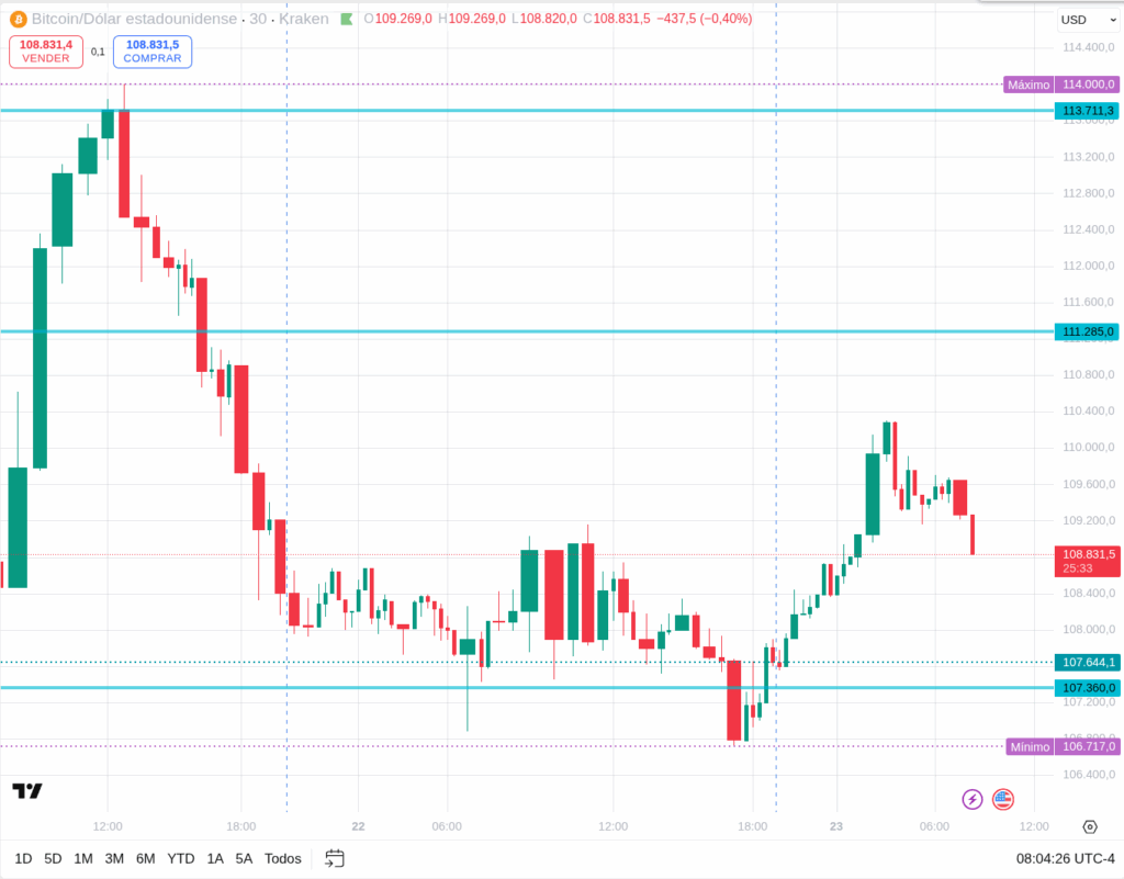 - Pivot / Control Zone: ~$108,500 – $109,500