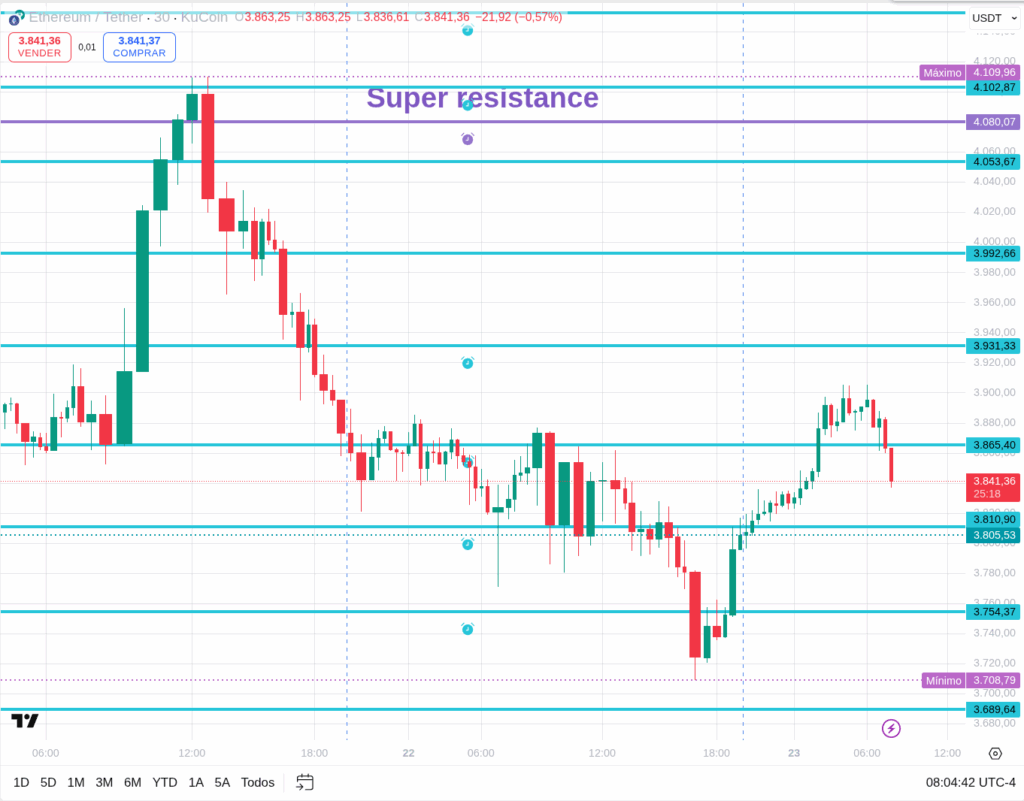 Ethereum, trading around $3,864, is back near the crucial support zone we discussed yesterday, hovering above the H&S target.