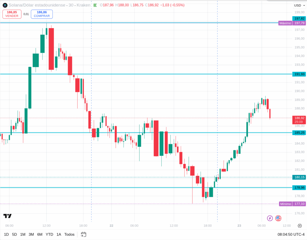 Solana, currently around $187.90, is showing strength today, potentially driven by the Uniswap news.