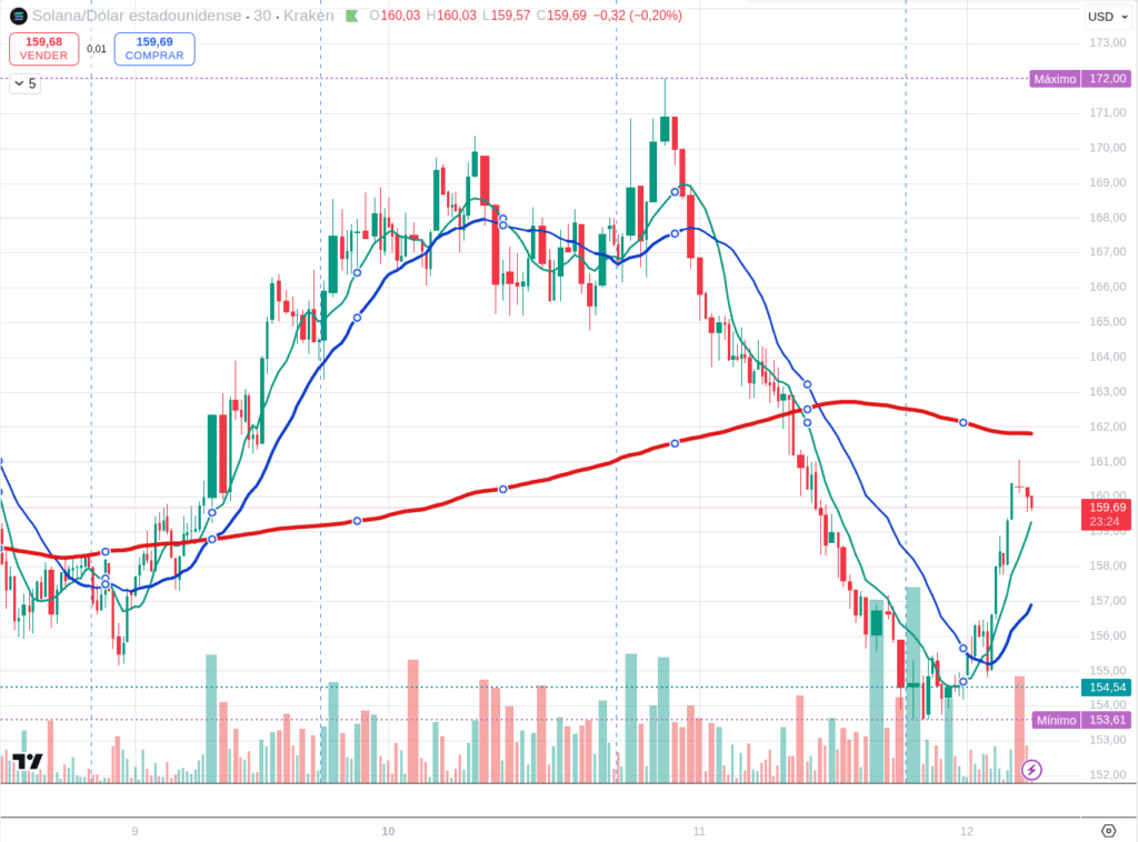 What to Watch: * SOL’s moves are always sharper. The RSI (30m) likely came out of deep oversold territory and is now neutral-positive (50-60). * The MACD (30m) is likely turning positive but might be lagging ETH. A break above $165 could trigger a fast, algo-driven move higher.