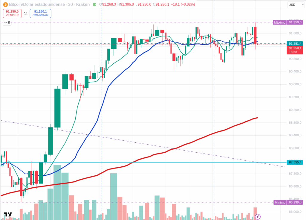 - Immediate Resistance: $91,900. The top of the current intraday range. A break here targets higher levels.