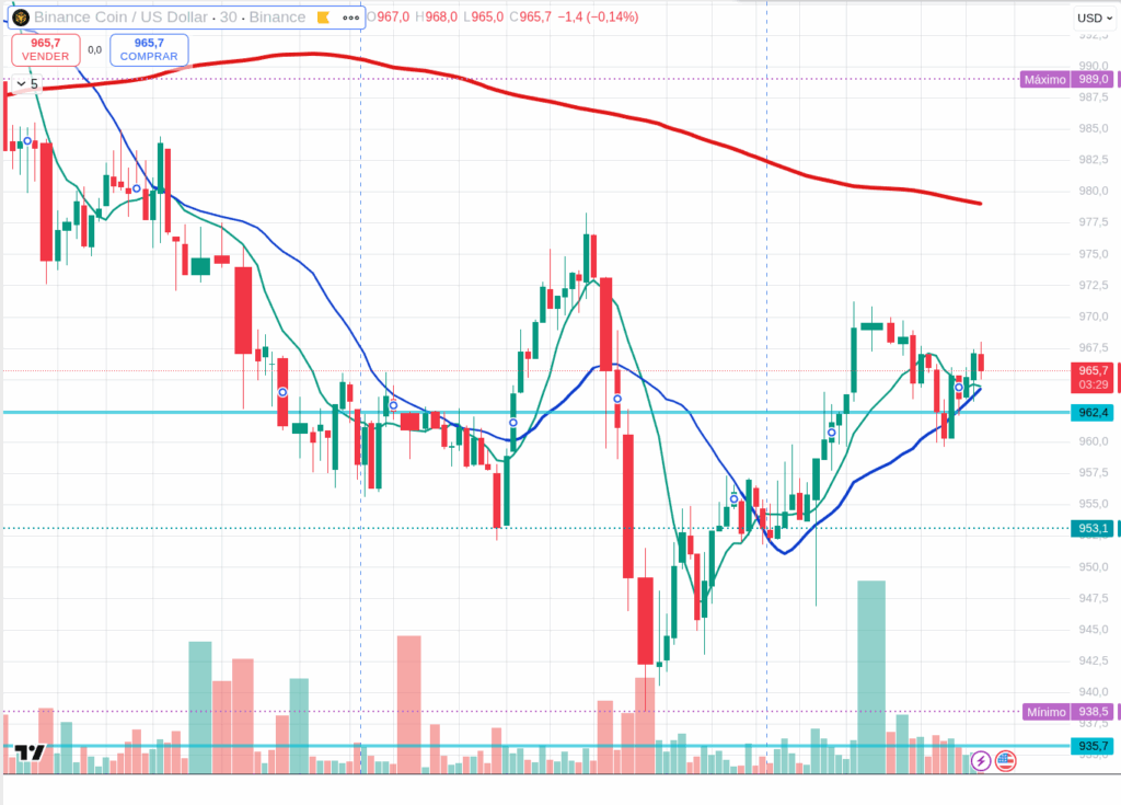BNB, at $966, continues to show structural resilience.